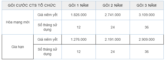 Viettel-CA trân trọng thông báo tới Quý Khách hàng bảng giá Chứng thư số (CTS) như sau: