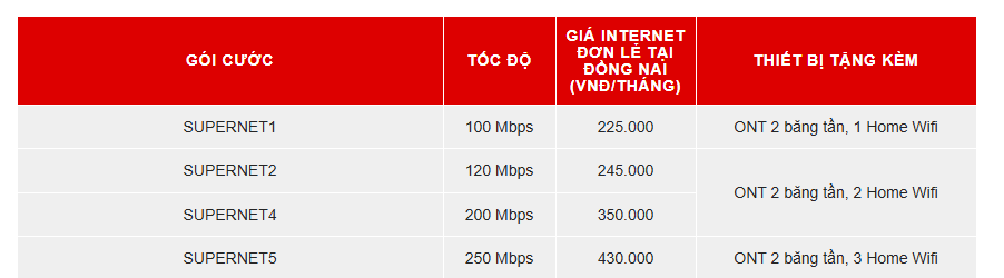 3. Báo giá gói SuperNet tại Đồng Nai