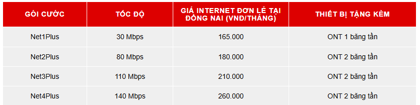 4. Bảng giá gói NetPlus tại Đồng Nai