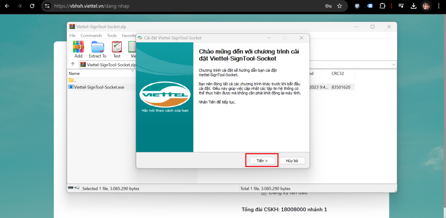 B1: Click 2 lần vào “Viettel-SignTool-Socket.exe”