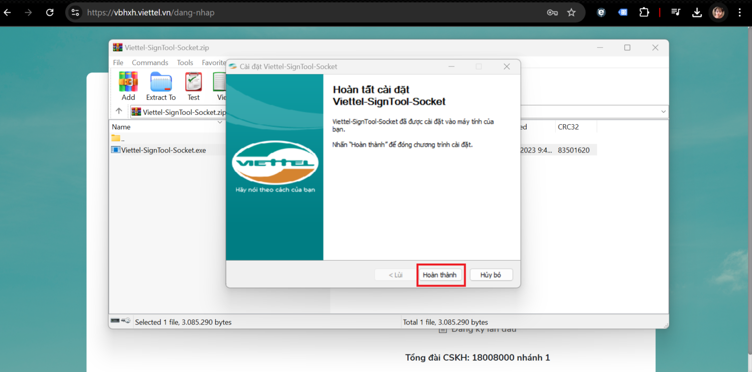 Đến đây bạn đã cài đặt thành công phần mềm ký số vBHXH Viettel. Vui lòng tắt trình duyệt và mở lại để hệ thống hoạt động tốt hơn.