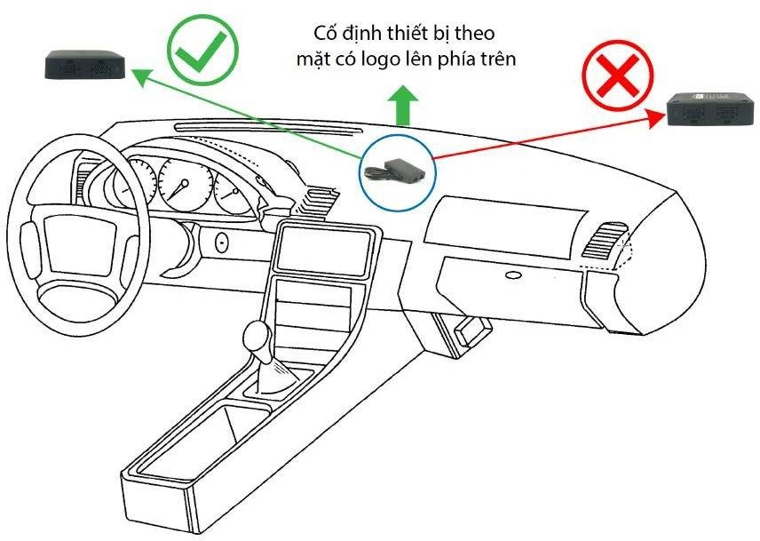 Vị trí lắp đặt thiết bị ở phía trên Taplo của xe